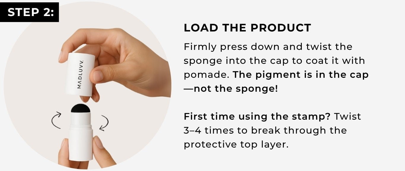 Step 2: Remember — the pomade is in the cap, not under the sponge. Twisting in the cap activates the product and gives you full color payoff.