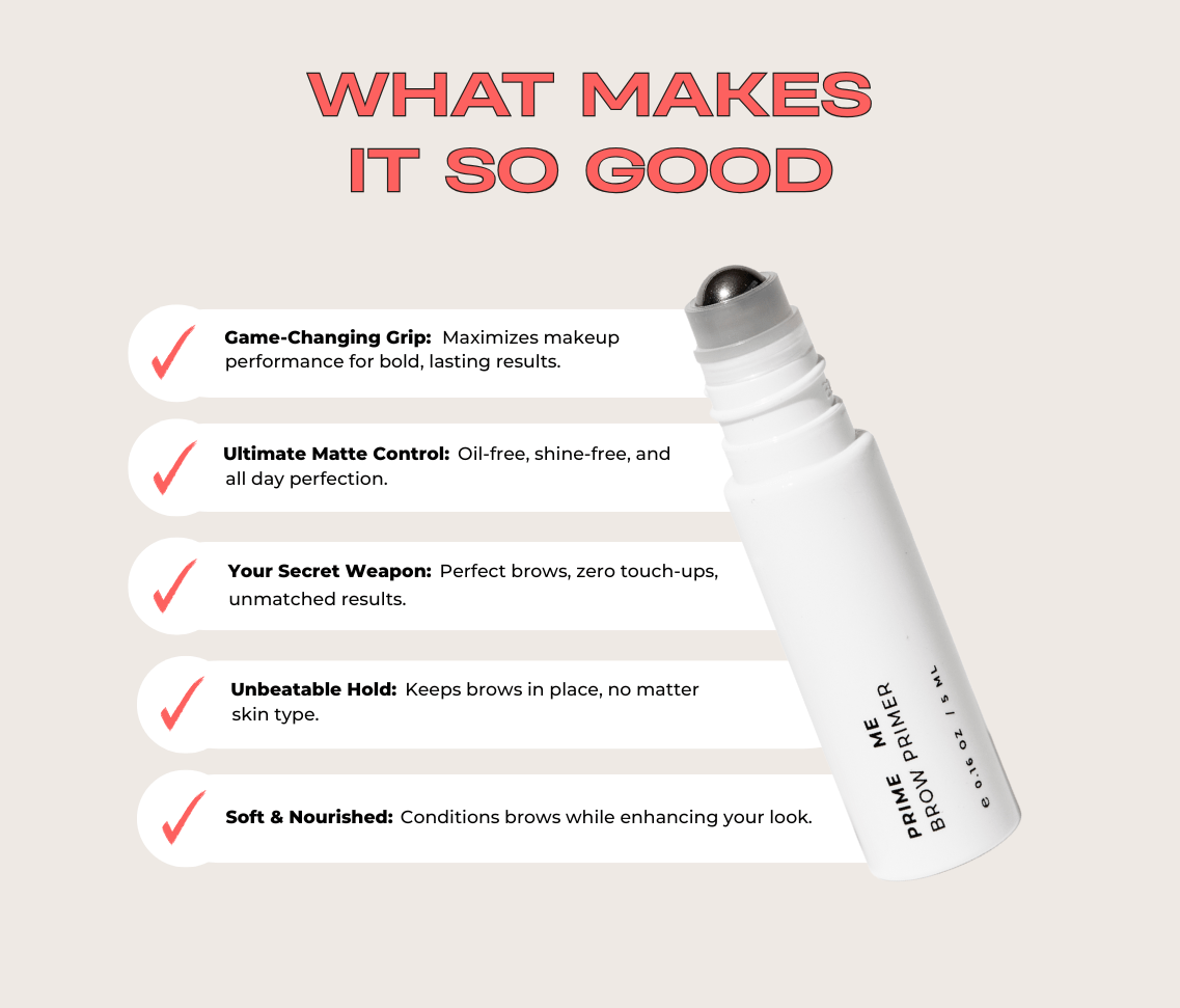 Prime Me Brow Primer offers the ultimate solution for a flawless brow look that lasts, without any dryness or discomfort. With a matte, oil-free finish, it creates the ideal base for brow products while conditioning brows and skin. Perfect for all brow types, especially those with oily skin, Prime Me ensures your brow makeup stays put and looks freshly applied, from morning to night—no touch-ups needed!